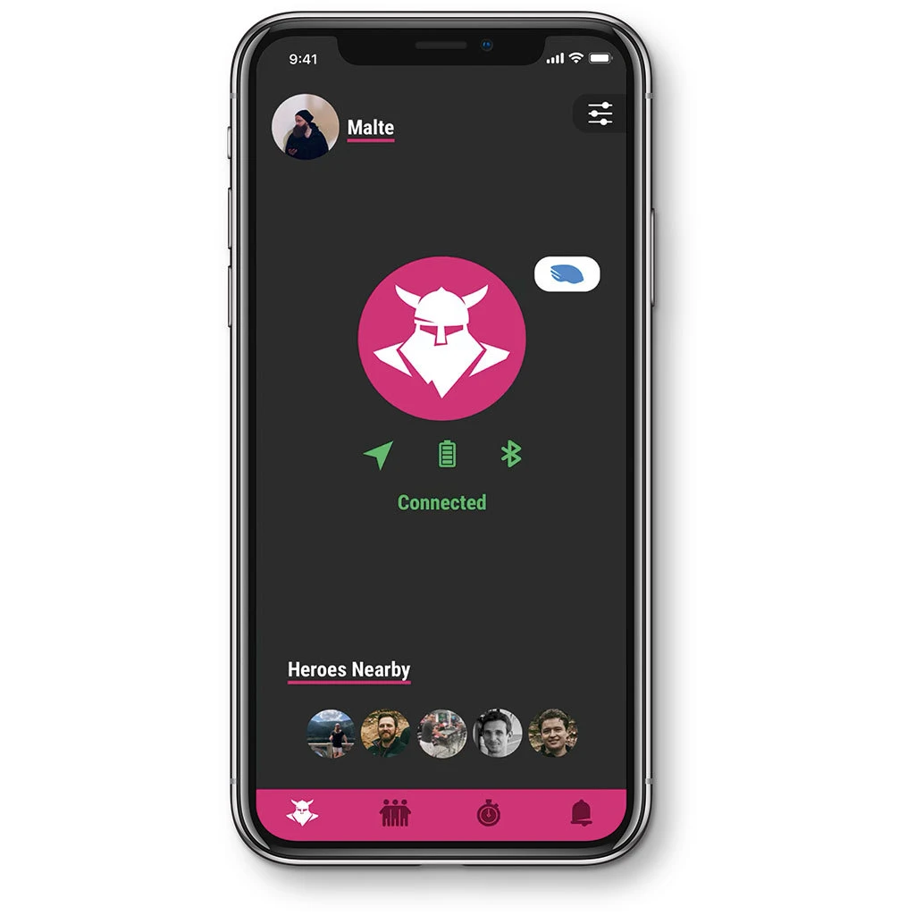 Kurz erklärt: Das System besteht aus dem Tocsen-Token an deinem Helm und der Tocsen-App auf deinem Handy. Der mit der App über Bluetooth verbundene Token erkennt den Sturz, die App gibt sofort ein lautes Alarm-Signal und setzt nach 30 Sekunden Wartezeit einen GPS-Daten-Notruf auch über eine schwache Funkverbindung an deine Notfallkontakte und Tocsen-User in deiner Nähe ab